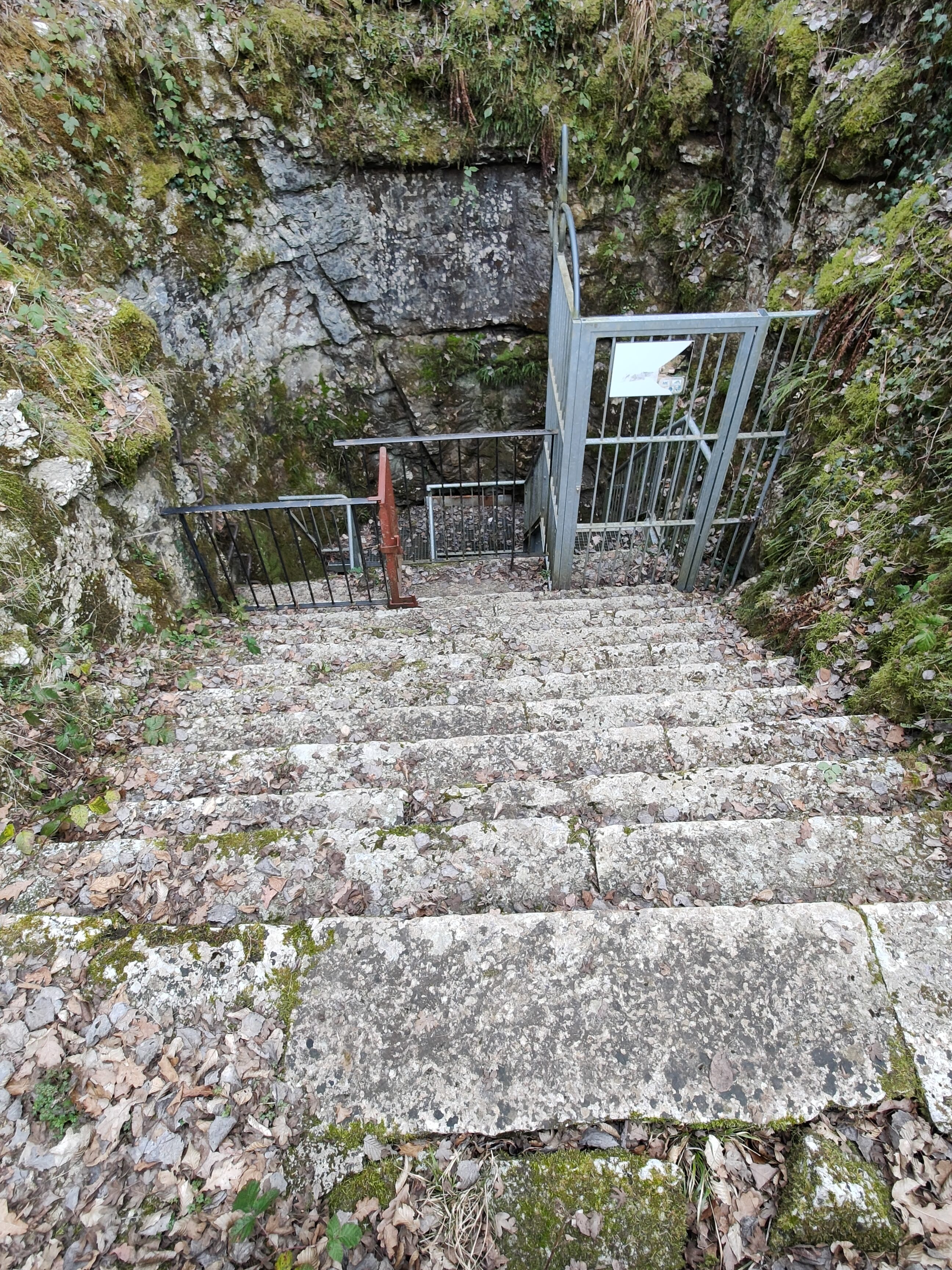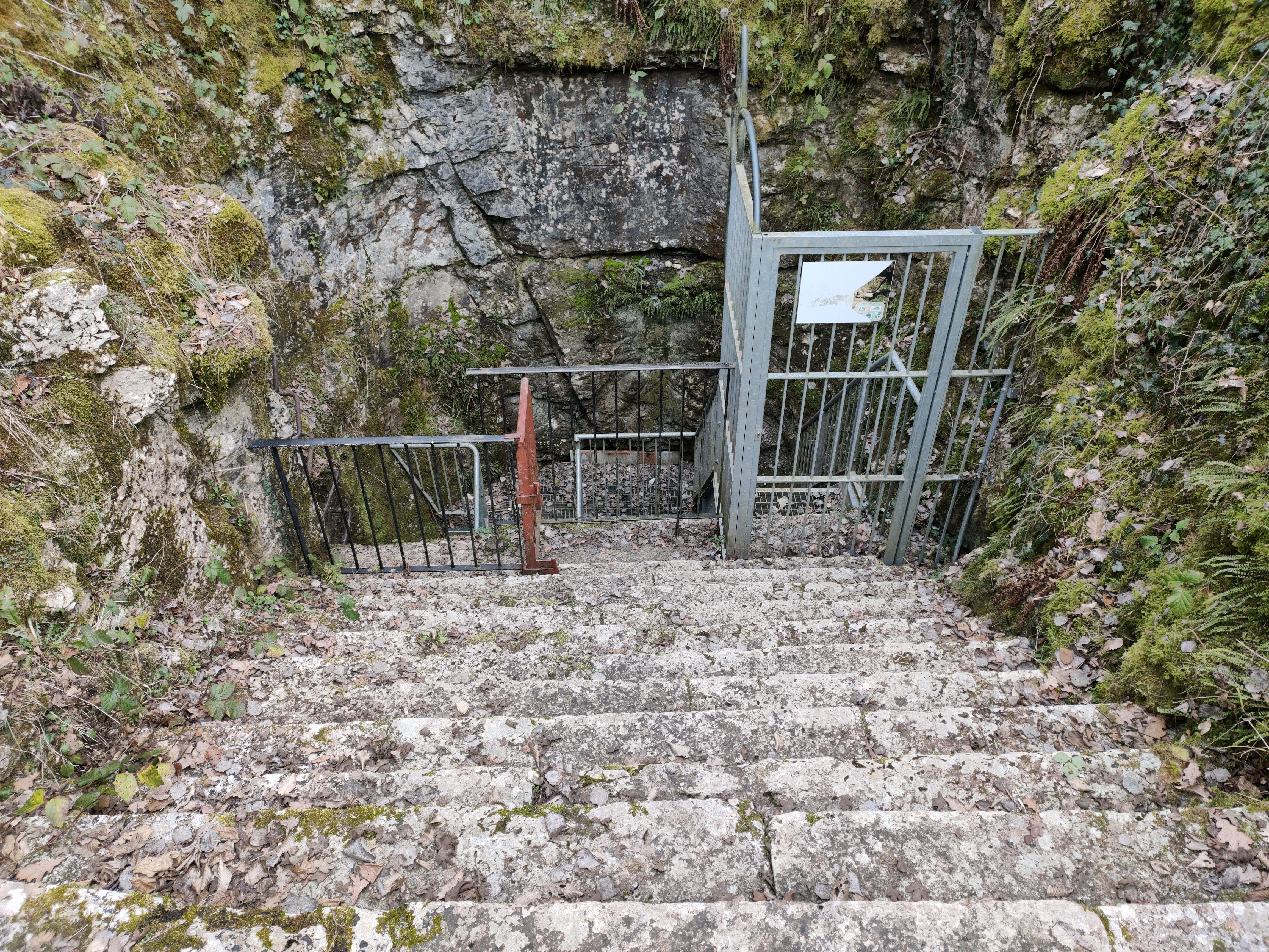 Tellement amusant et aventureux de faire cela sans guide ! Bien sûr, cela peut se faire avec un guide à certaines heures, mais à gauche du portail vous trouverez un escalier (attention, cela peut être un peu glissant et ne doit pas être fait avec de jeunes enfants), afin que vous puissiez entrez vous-même dans la grotte. La grotte mesure environ un kilomètre de long. Après la grotte, vous pouvez revenir par un sentier pédestre. Ce chemin est balisé de salamandres, mais pas toujours clair. Après le tunnel, continuez tout droit sur une courte distance, puis tournez à droite. Ce n'est qu'à un certain moment que vous trouverez le premier panneau avec une salamandre dessus. Suivez ce chemin jusqu'à atteindre une route goudronnée, tournez à droite et suivez-la en montant pendant un long chemin. Ce n'est qu'au bout d'un moment que vous trouverez un panneau avec une salamandre sur la gauche. Apportez des casques et un bon éclairage. Il y a un peu d'eau dans la grotte après la pluie et il faut se baisser comme un adulte dans une partie de la grotte. Garez votre voiture le long de la route lorsque vous quittez le village de Drom après environ un kilomètre. Il y a des panneaux indiquant Tunnel (le Drom). GPS : 46.2029 5.3677.